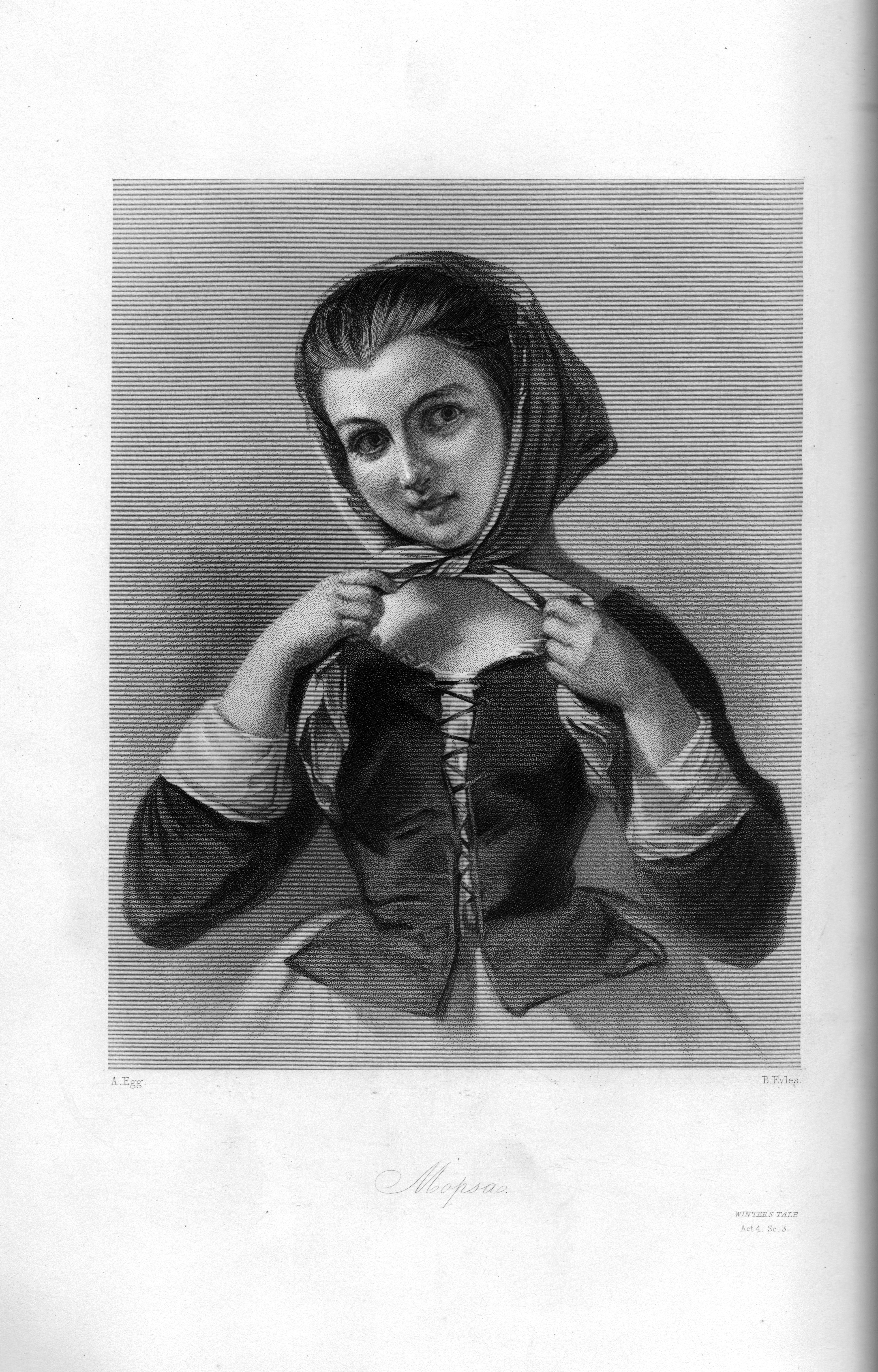 Source Text: The heroines of Shakspeare: comprising the principal female characters in the plays of the great poet. Engraved in the highest style of art, from drawings by eminent artists. With letterpress extracts from the text, in English and French; and critical essays on each of the characters.
