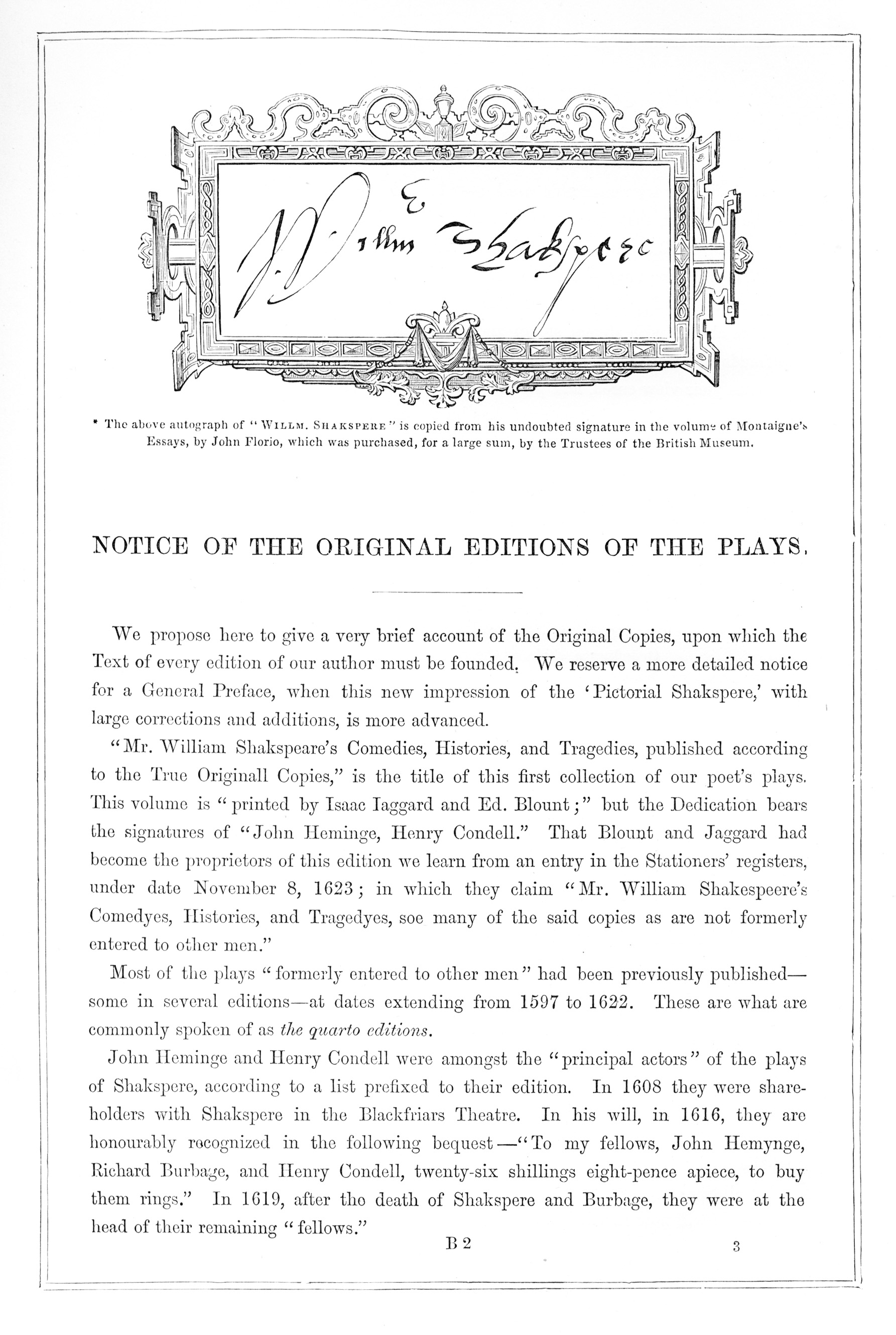 Autograph of Shakspere, from his copy of Florio’s Montaigne, now in the British Museum